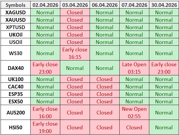 در نتیجه، برنامه معاملاتی برخی از ابزارهای معاملاتی تغییر خواهد کرد.